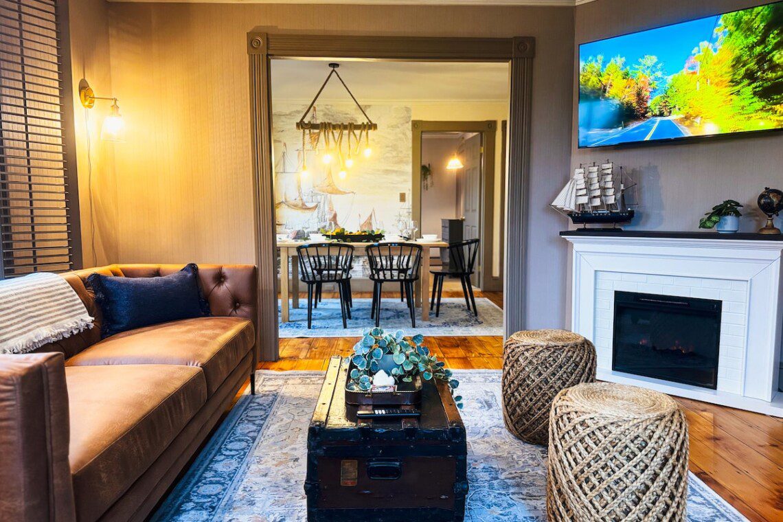 Welcome to our chic 2-bedroom, 1-bathroom getaway, perfect for young professionals and families! Enjoy modern design, an electric fireplace, and a private deck. Located minutes from downtown, explore historic streets, boutique shops, and a vibrant culinary scene. Amenities include a fully equipped kitchen, smart TV, high-speed WiFi, and free parking. Book now for a cozy and convenient stay in Portsmouth!