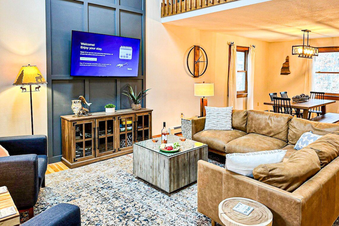 With four beautifully furnished bedrooms, everyone will find their sanctuary here. The serene ambiance and comfortable furnishings ensure a restful night’s sleep after a day of lakeside adventures. And with two bathrooms, getting ready for the day is a breeze.