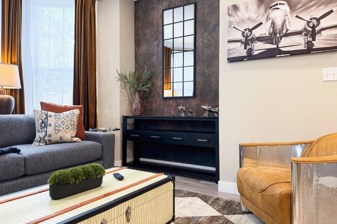 Enjoy the best of downtown Portsmouth in this newly renovated, aviation-themed 1-bedroom, 1-bathroom luxury apartment, located just a few blocks from Market Square. Step out of your door and find yourself immersed in the vibrant heart of the city, with Portsmouth’s top restaurants, cafes, boutiques, and historic landmarks all within a few minutes’ walk.